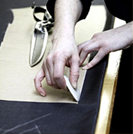 一套凱利易紳正裝,且體師要進(jìn)行20—30個(gè)數(shù)據(jù)的測(cè)量,在做的過(guò)程中,還要隨時(shí)找到身上的細(xì)微變化,以確保數(shù)據(jù)準(zhǔn)確無(wú)誤,并留下相關(guān)的影像資料備用.然后工藝師核對(duì)相關(guān)數(shù)據(jù),用紙板打出紙樣,進(jìn)行面料的裁剪。